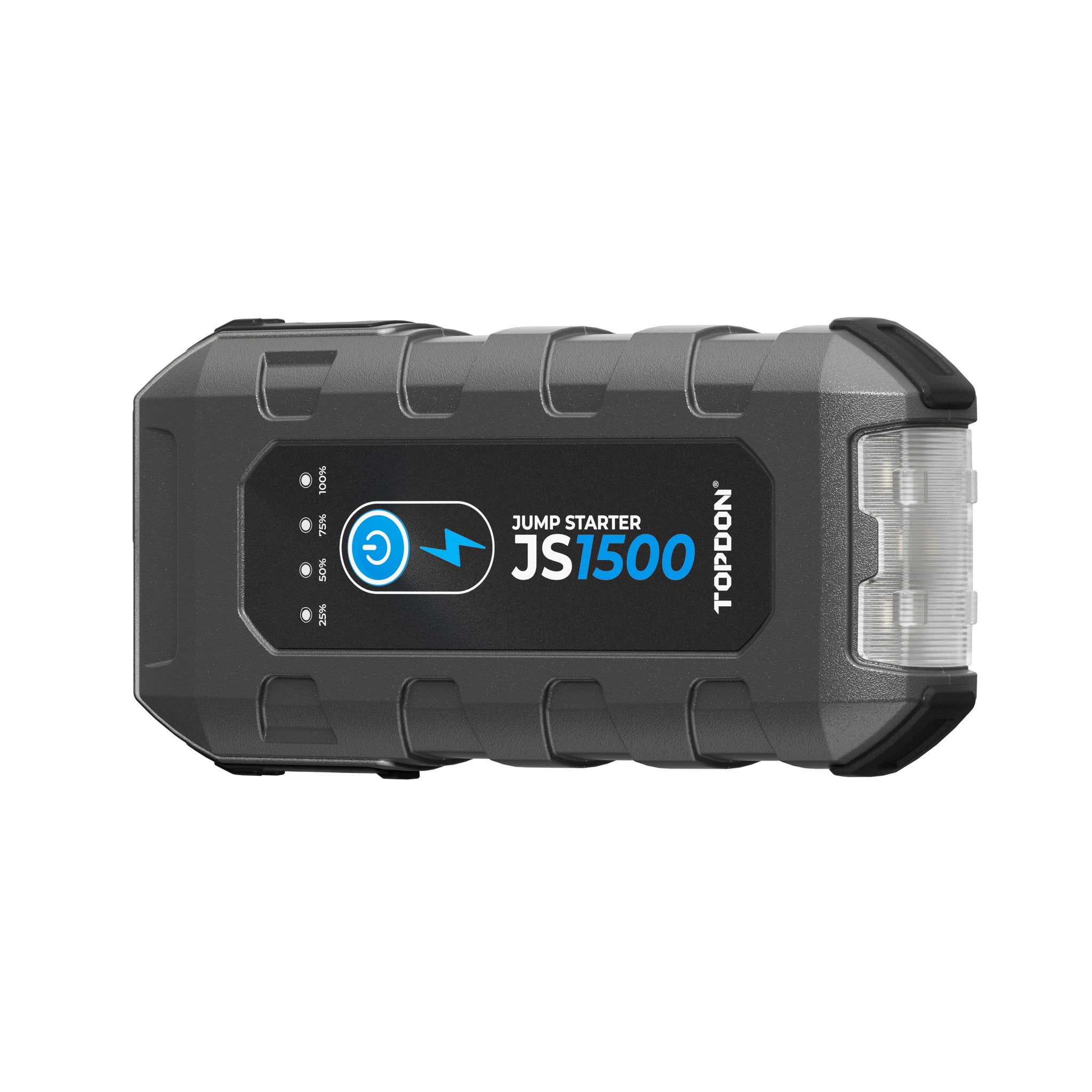 TDU-JS1500The JumpSurge1500 jump starter delivers 1500A of peak power to start dead 12V batteries in cars, motorcycles, boats, and more. It supports engines up to 6.5L gas and 4.0L diesel. With a compact build and 6-layer safety protection, it’s powerful, portable, and easy to use. A 10,000mAh power bank with triple fast-charging ports keeps your devices powered, while the 300-lumen LED flashlight provides visibility in emergencies. Built for everyday drivers and real-world use.